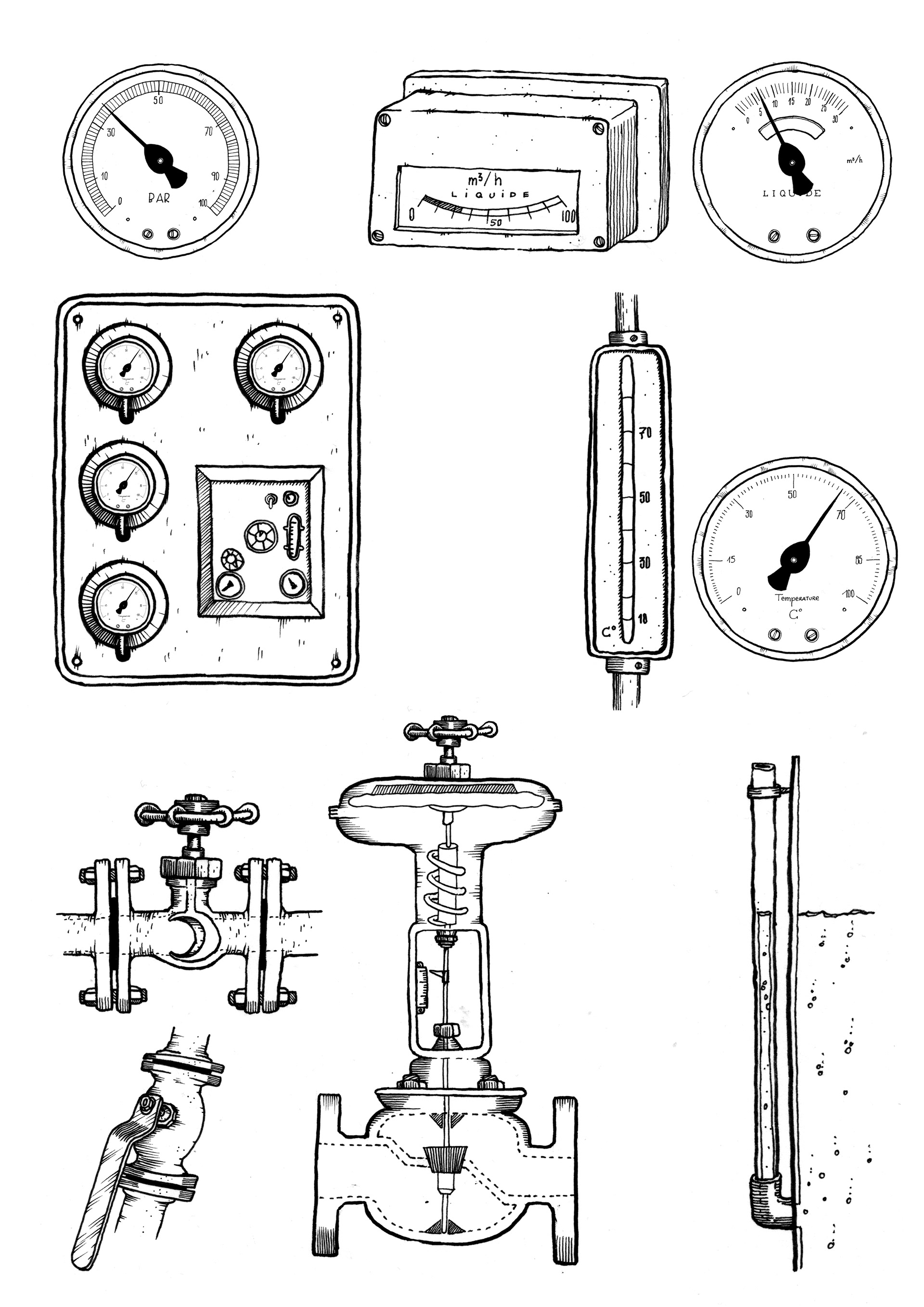 Illustrations pédagogiques réalisées pour les lutrins de la distilerie de l'